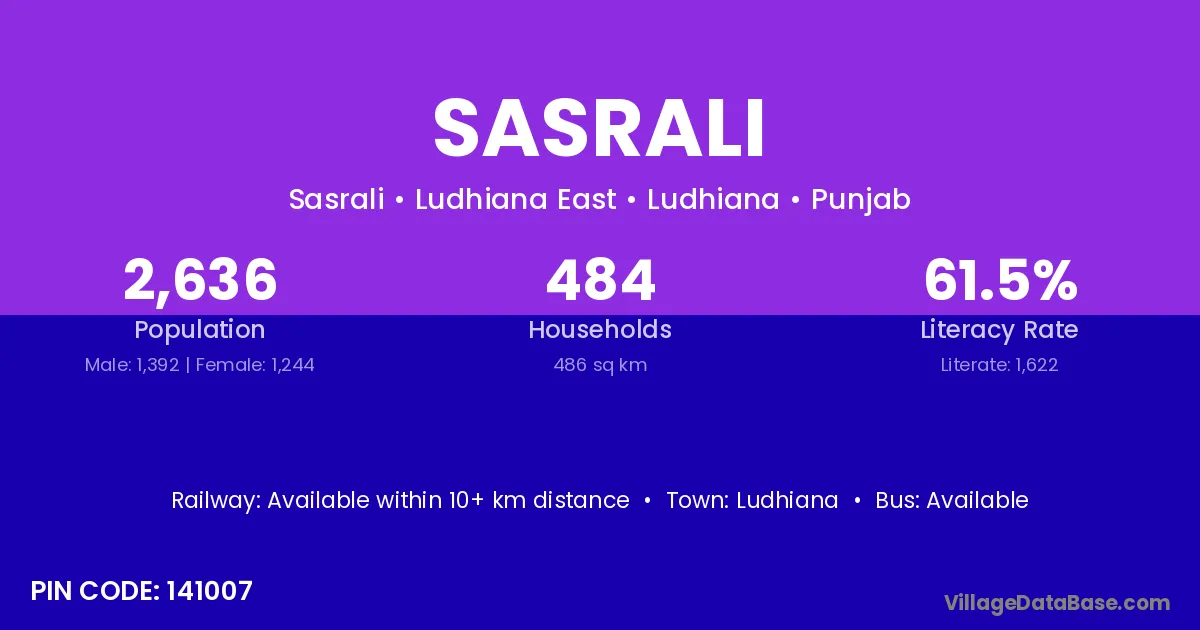 Ludhiana is the nearest town to Sasrali village for major economic activities