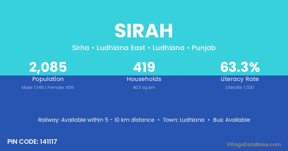 Ludhiana is the nearest town to Sirah village for major economic activities