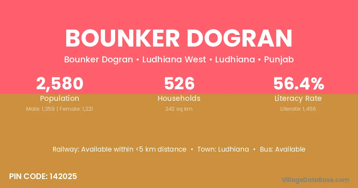 Ludhiana is the nearest town to Bounker Dogran village for major economic activities