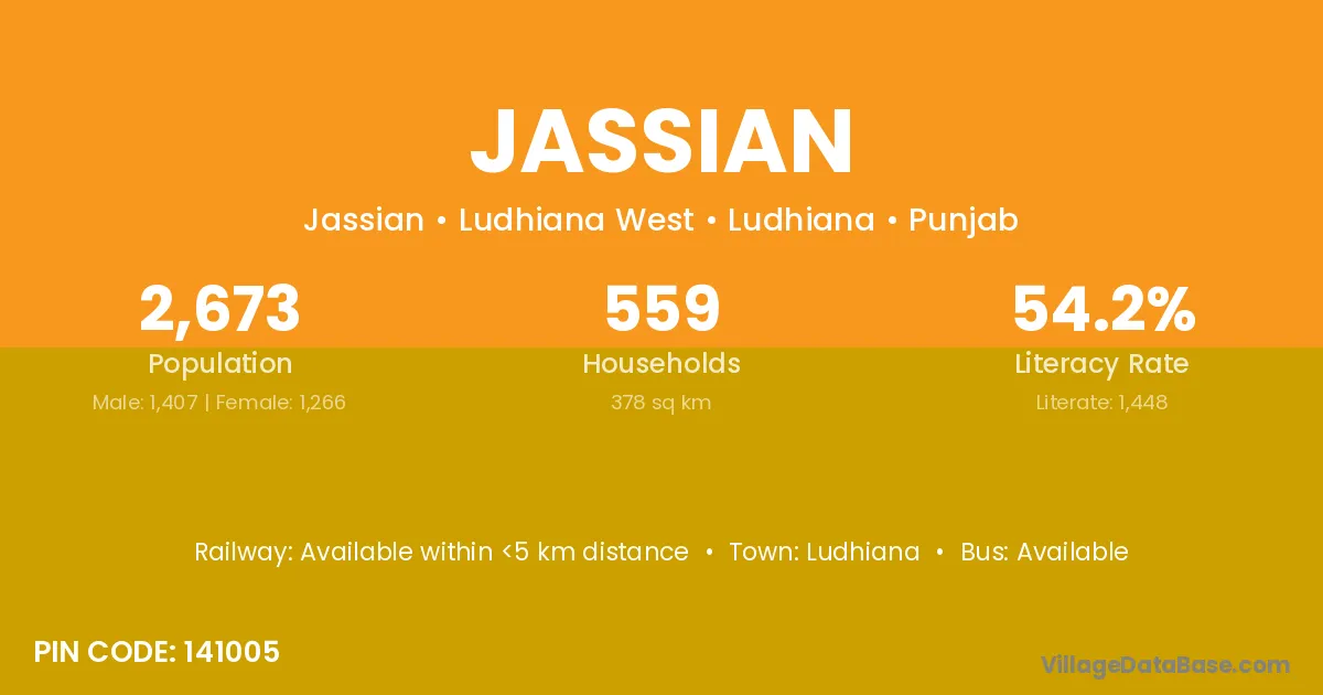 Ludhiana is the nearest town to Jassian village for major economic activities
