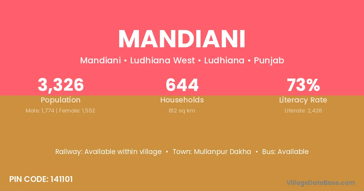 Mullanpur Dakha is the nearest town to Mandiani village for major economic activities