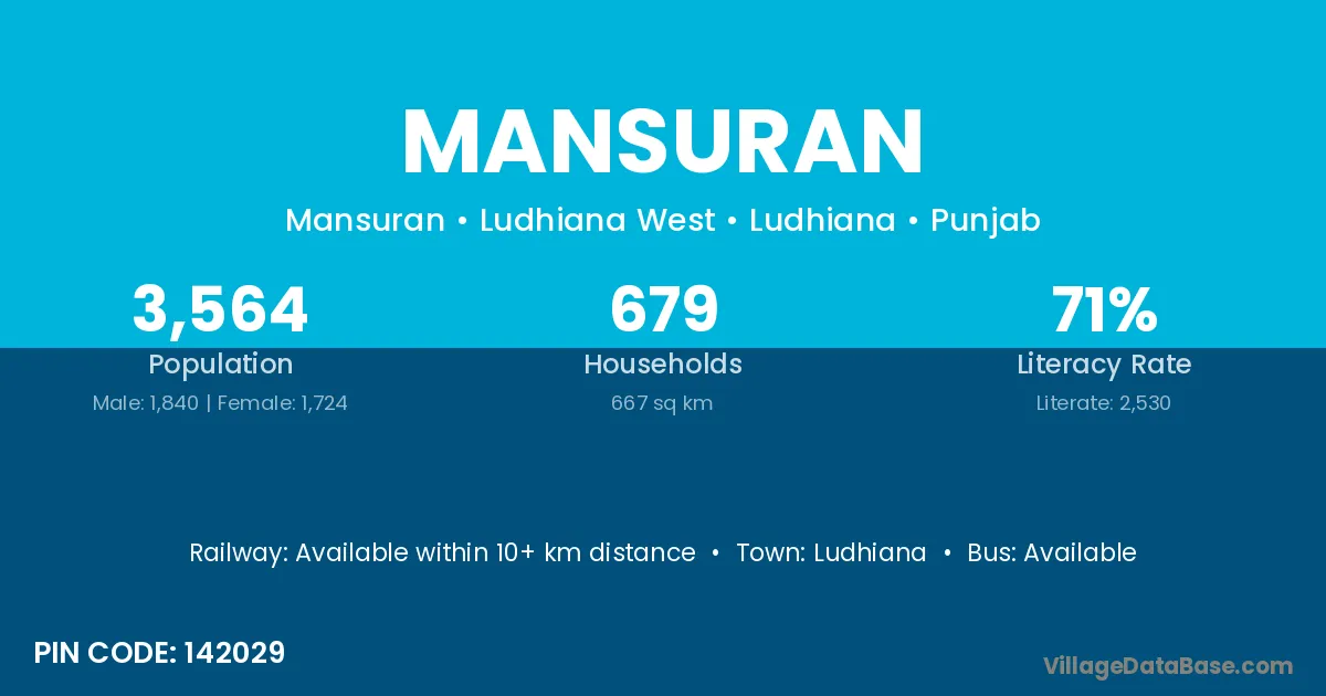 Ludhiana is the nearest town to Mansuran village for major economic activities