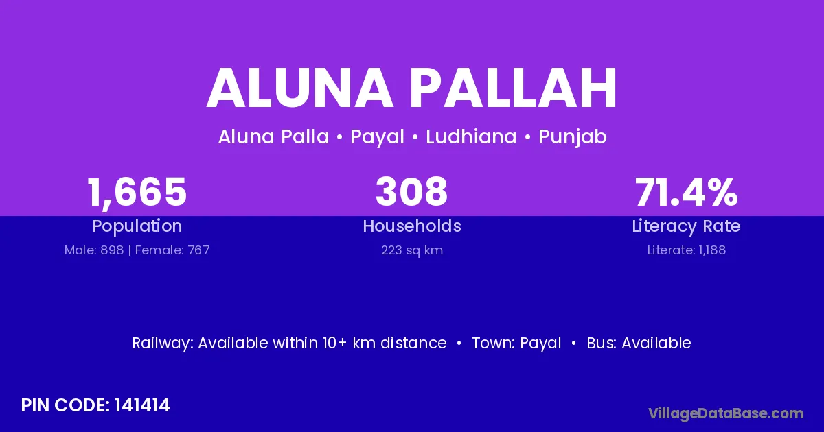 Aluna Pallah village is located in the Payal Tehsil of the Ludhiana district in Punjab .