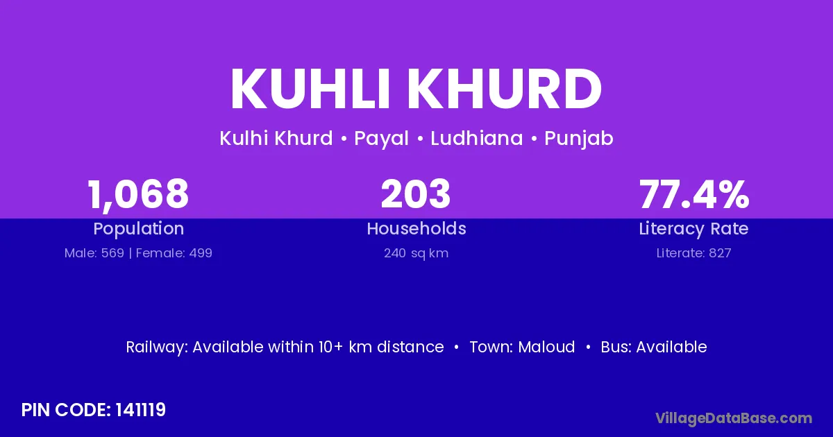 According to Census 2011 information, the village code of Kuhli Khurd village is 141119.