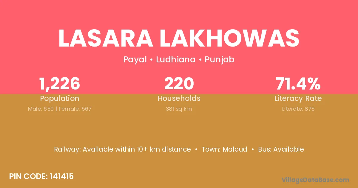 Lasara Lakhowas village has a total population of 1,226 people, of which 659 are males and 567 are females.