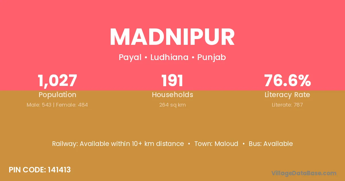 Maloud is the nearest town to Madnipur village for major economic activities