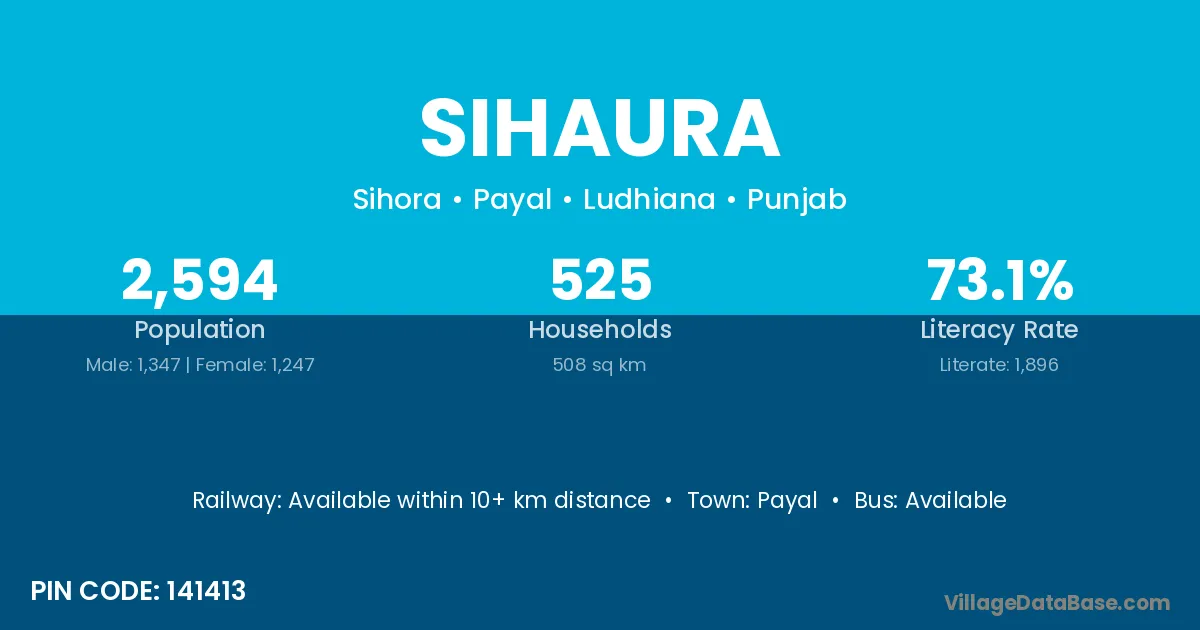 Sihaura village is located in the Payal Tehsil of the Ludhiana district in Punjab .