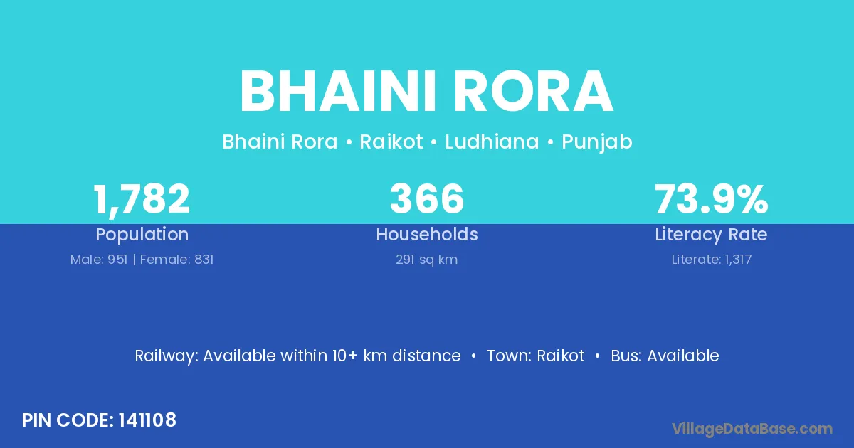 According to Census 2011 information, the village code of Bhaini Rora village is 141108.