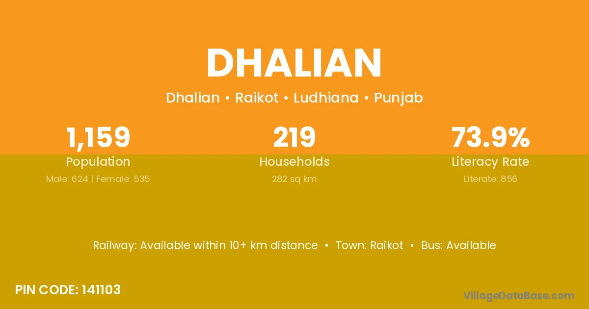 Dhalian village has a total population of 1,159 people, of which 624 are males and 535 are females.