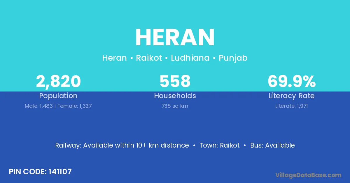 Raikot is the nearest town to Heran village for major economic activities