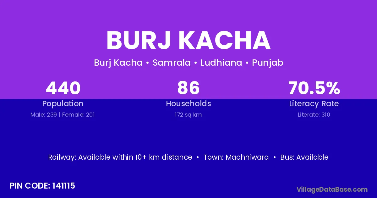 Machhiwara is the nearest town to Burj Kacha village for major economic activities