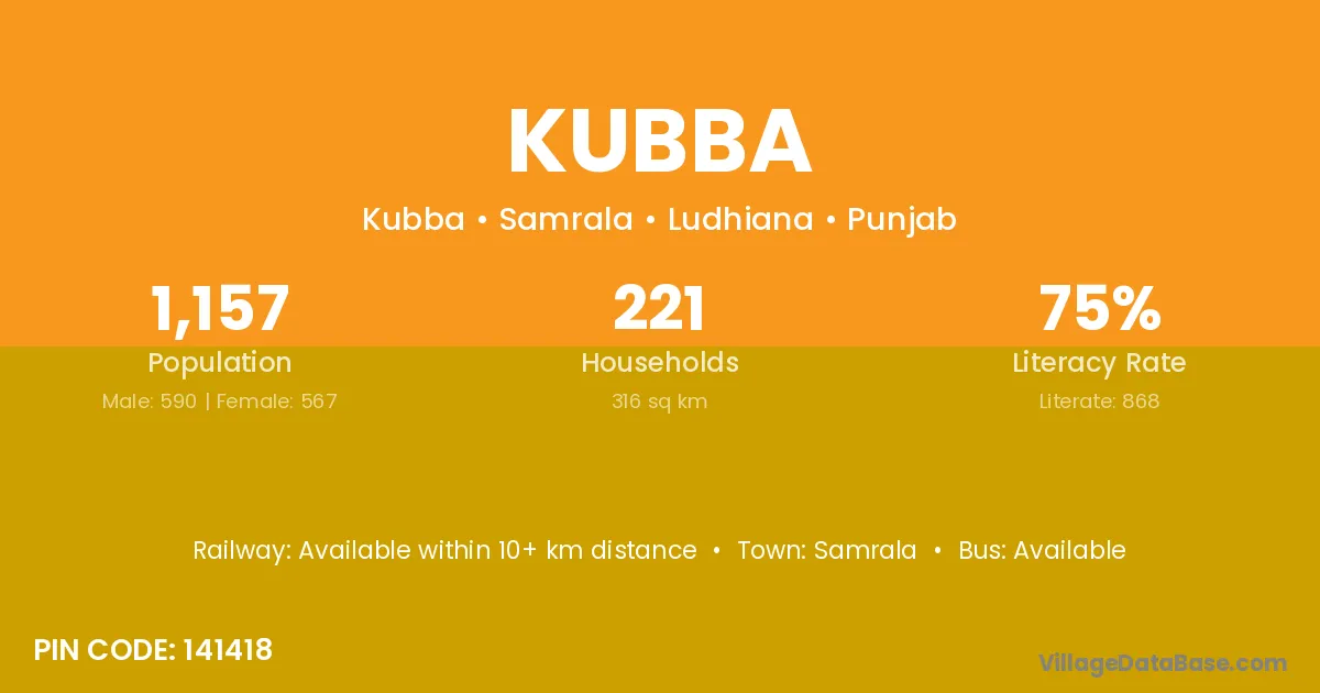 Samrala is the nearest town to Kubba village for major economic activities