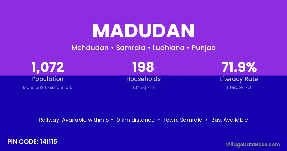 Samrala is the nearest town to Madudan village for major economic activities