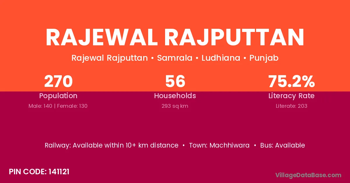 Rajewal Rajputtan village has a total population of 270 people, of which 140 are males and 130 are females.