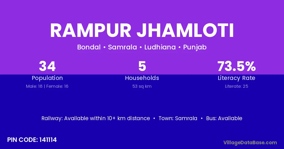 Samrala is the nearest town to Rampur Jhamloti village for major economic activities
