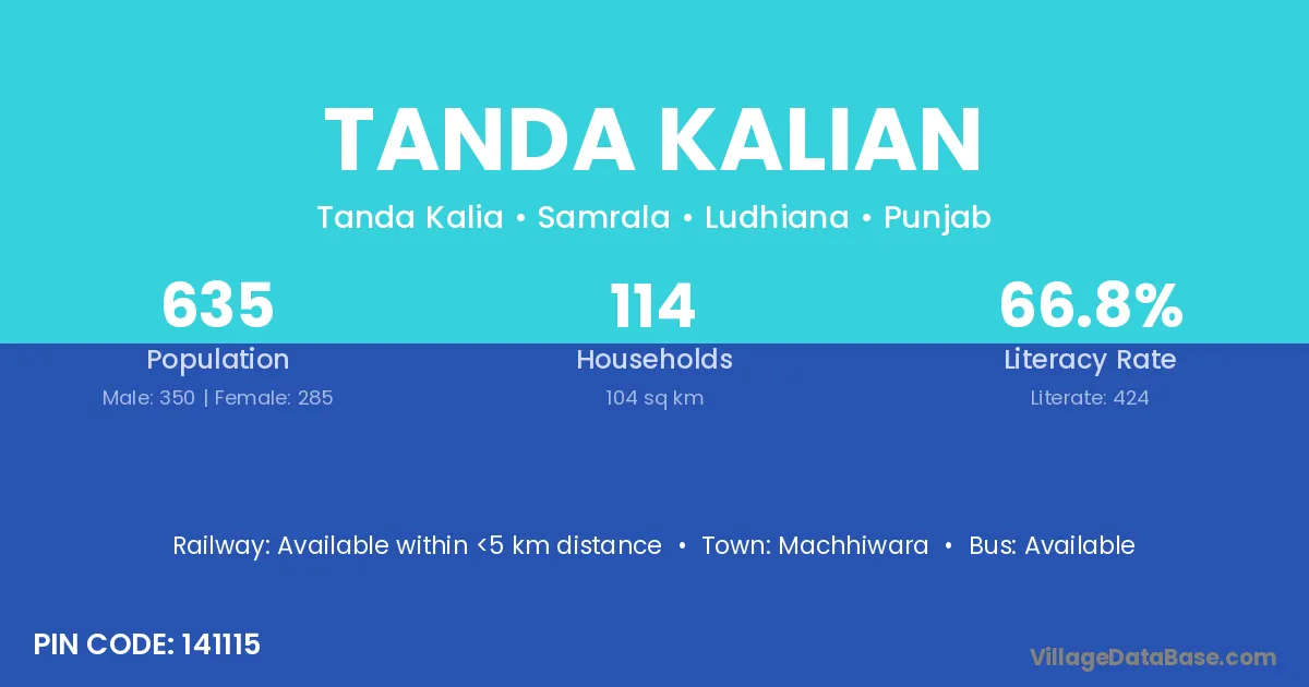 Machhiwara is the nearest town to Tanda Kalian village for major economic activities