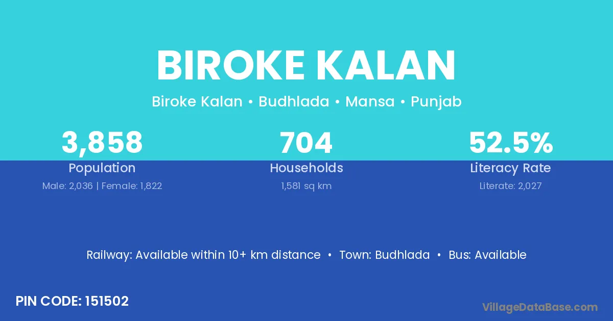 Budhlada is the nearest town to Biroke Kalan village for major economic activities