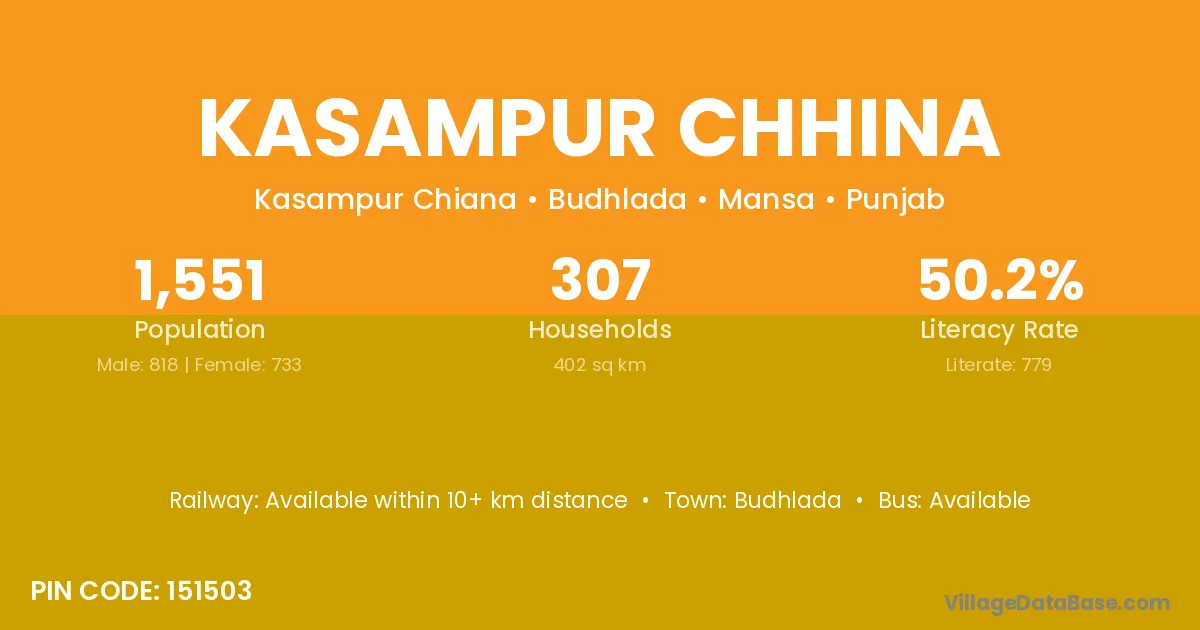 Budhlada is the nearest town to Kasampur Chhina village for major economic activities