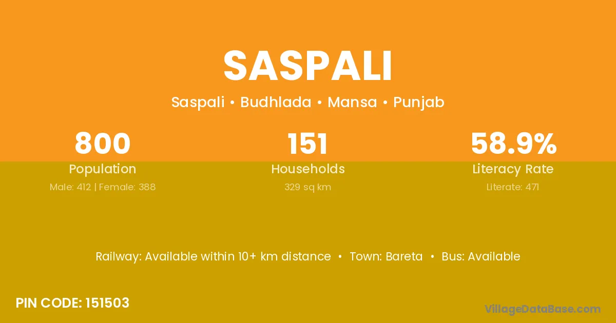 Bareta is the nearest town to Saspali village for major economic activities