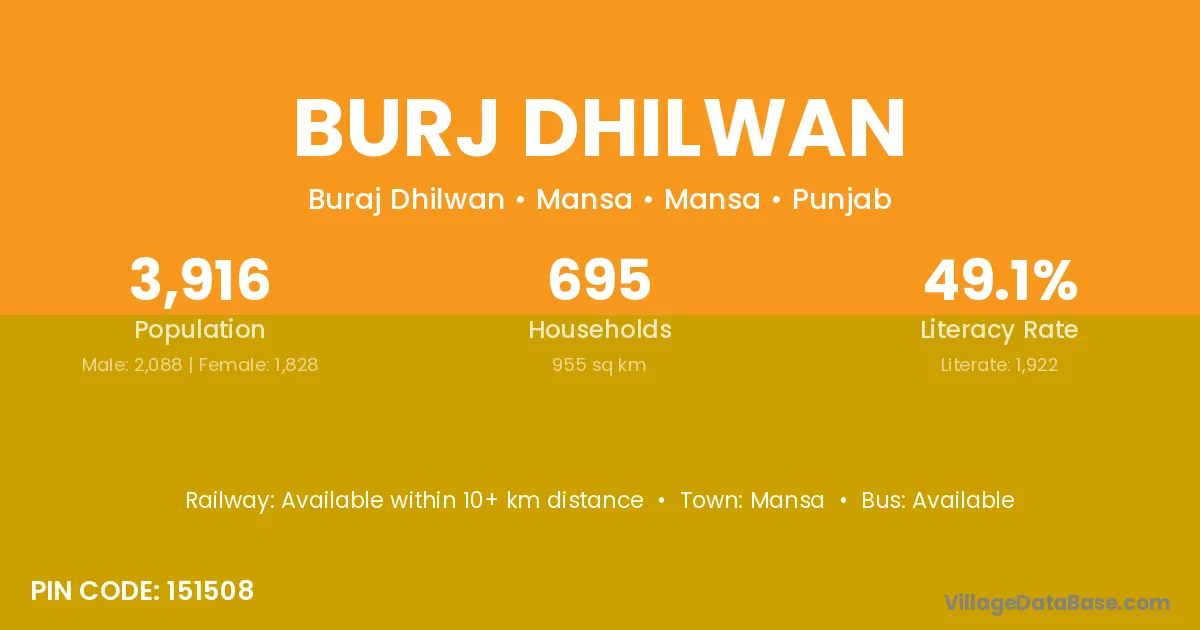 Mansa is the nearest town to Burj Dhilwan village for major economic activities
