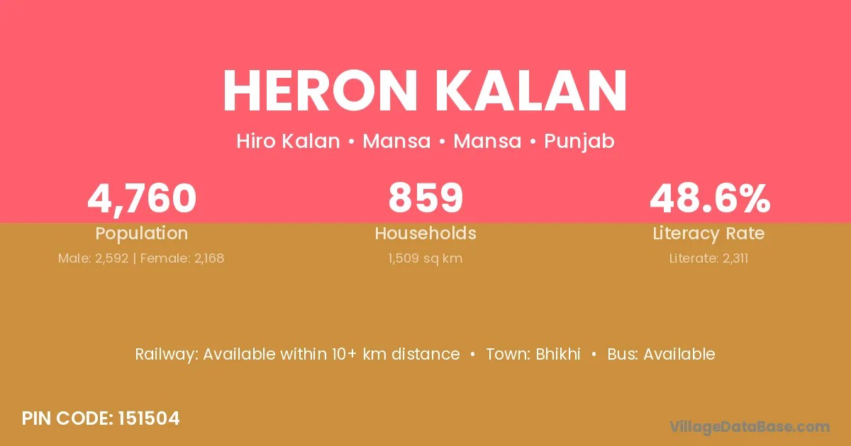 According to Census 2011 information, the village code of Heron Kalan village is 151504.