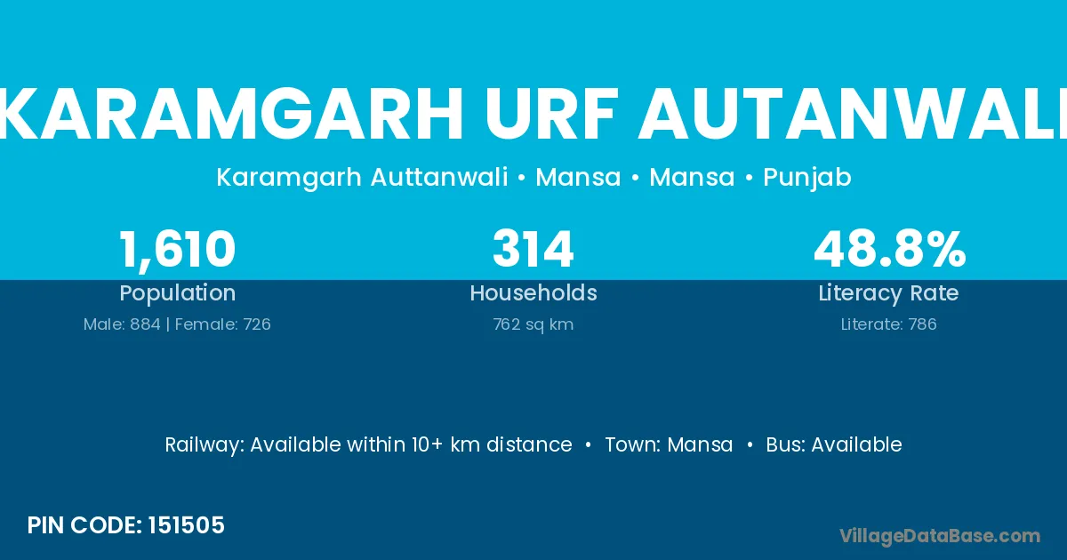 Mansa is the nearest town to Karamgarh Urf Autanwali village for major economic activities