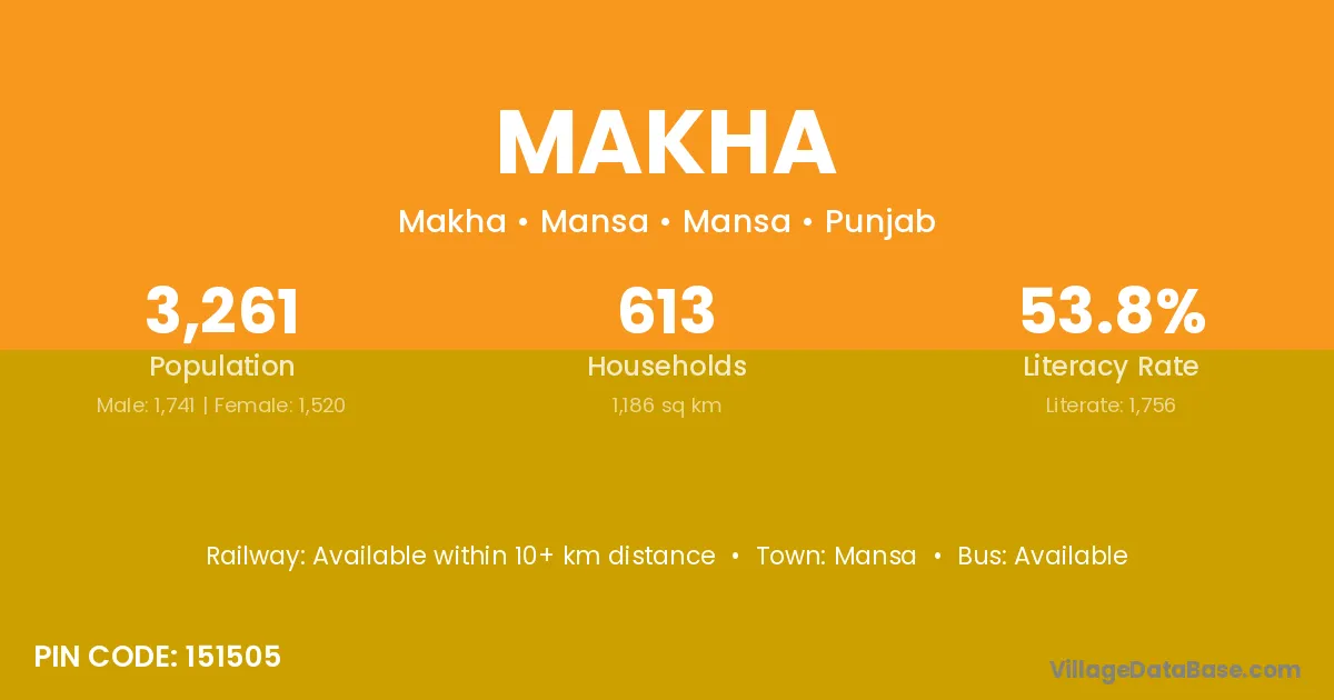 Makha village has a total population of 3,261 people, of which 1,741 are males and 1,520 are females.