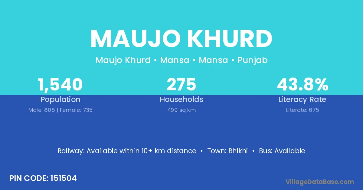 Bhikhi is the nearest town to Maujo Khurd village for major economic activities