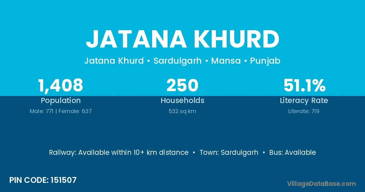 Sardulgarh is the nearest town to Jatana Khurd village for major economic activities
