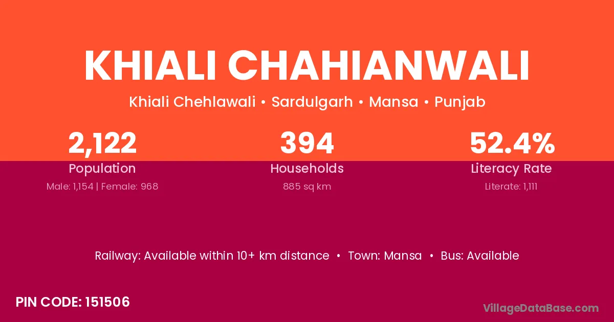 Mansa is the nearest town to Khiali Chahianwali village for major economic activities