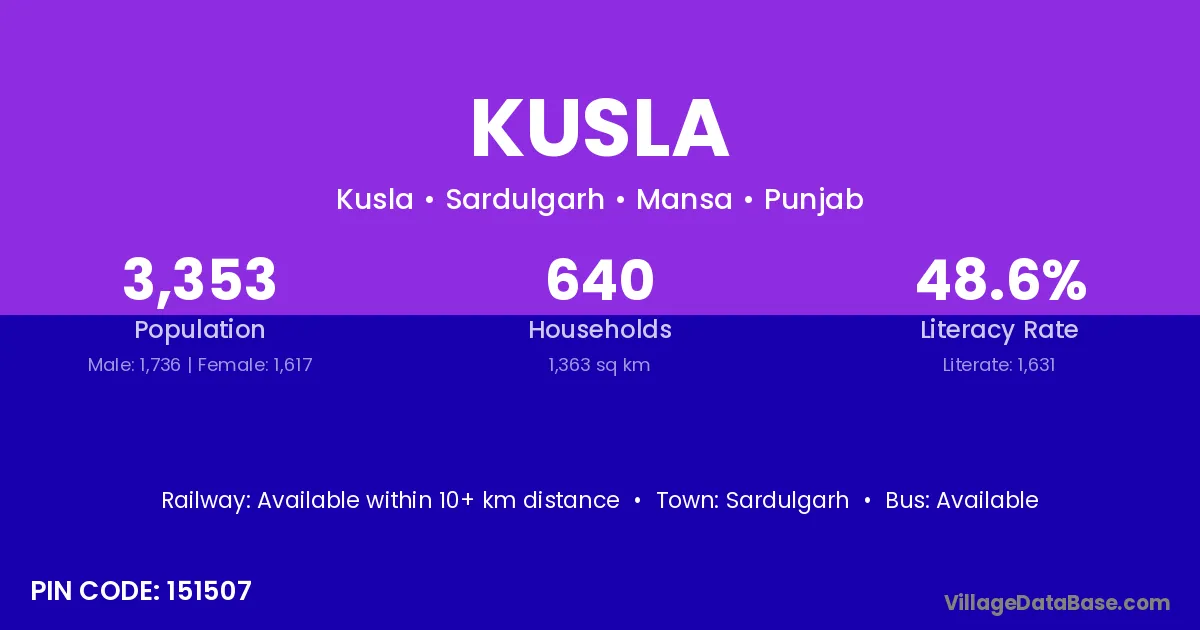 Sardulgarh is the nearest town to Kusla village for major economic activities