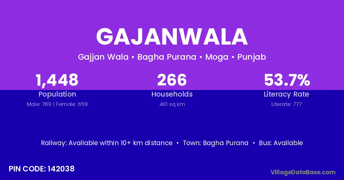 Gajanwala village has a total population of 1,448 people, of which 789 are males and 659 are females.