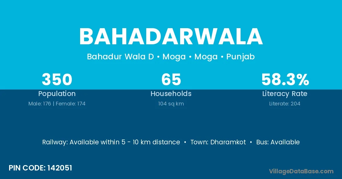 Bahadarwala village has a total population of 350 people, of which 176 are males and 174 are females.