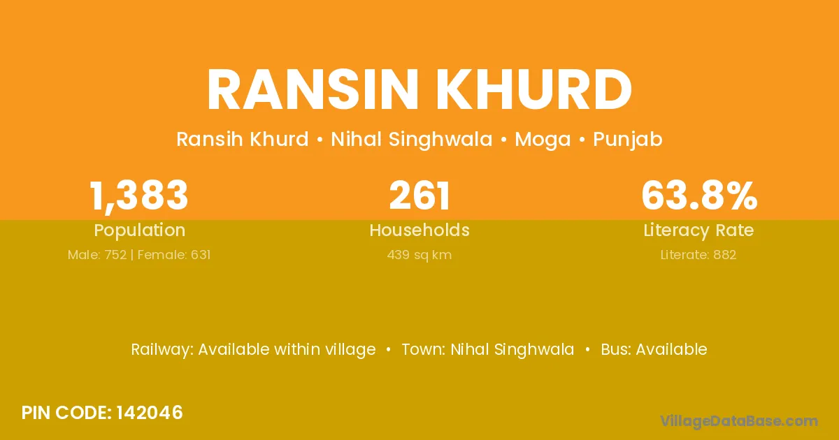 Nihal Singhwala is the nearest town to Ransin Khurd village for major economic activities