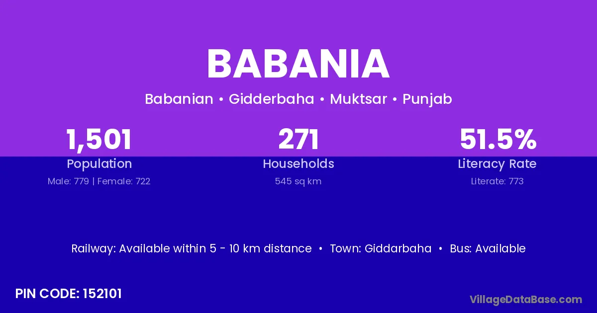 Giddarbaha is the nearest town to Babania village for major economic activities