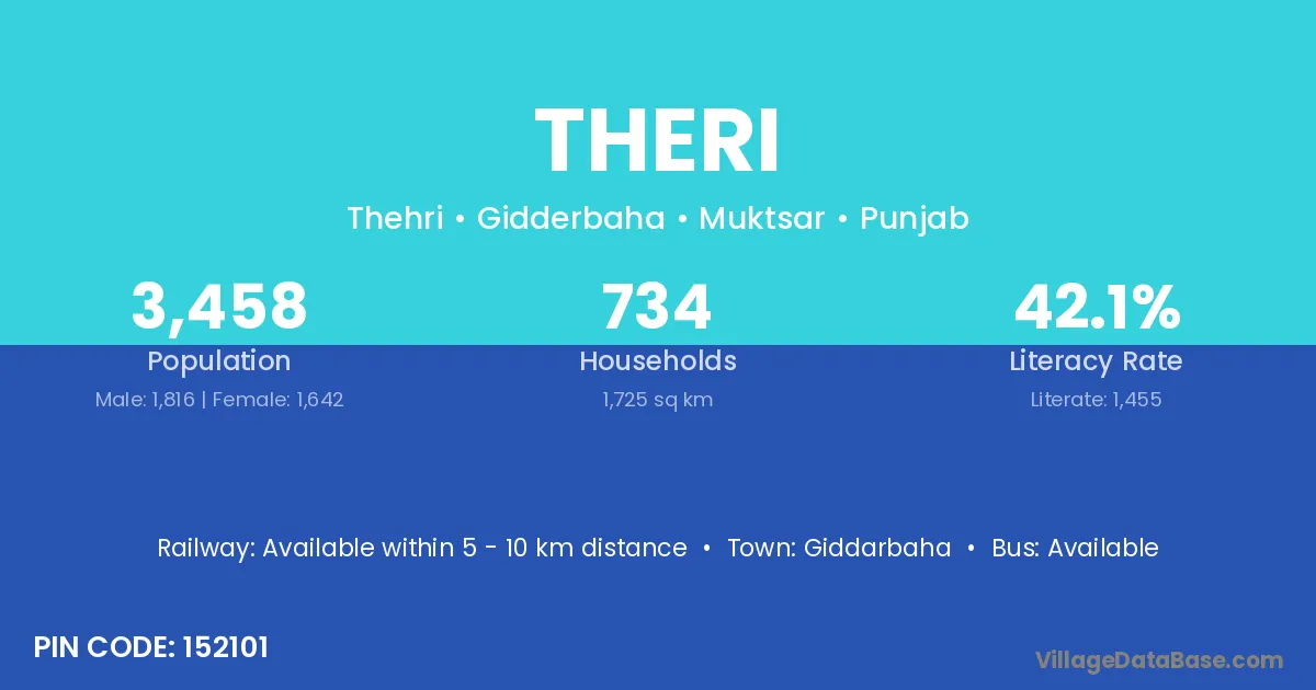 Giddarbaha is the nearest town to Theri village for major economic activities