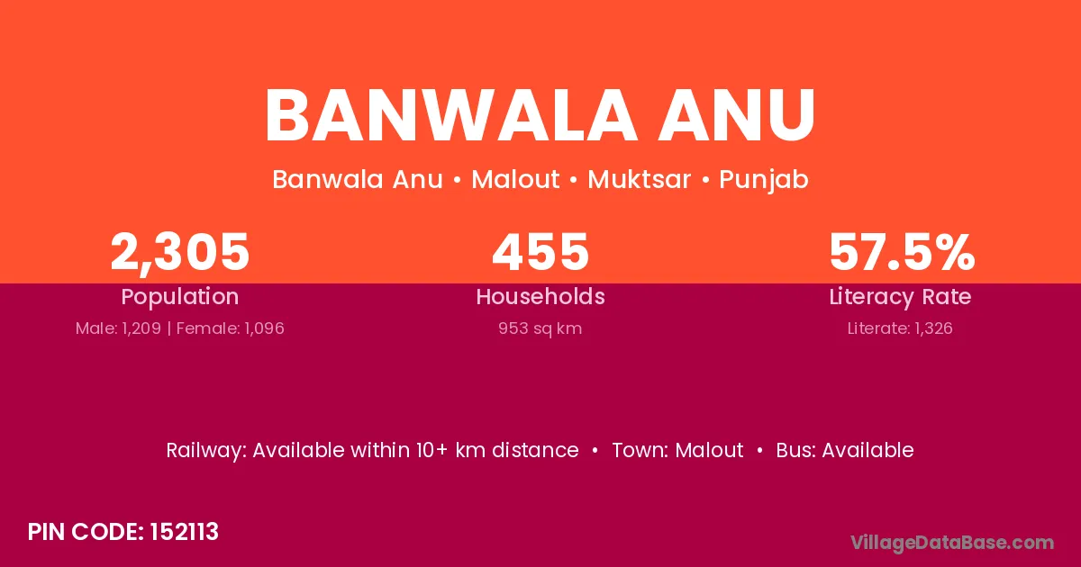 Malout is the nearest town to Banwala Anu village for major economic activities
