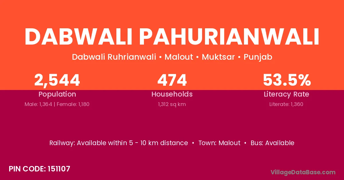 Malout is the nearest town to Dabwali Pahurianwali village for major economic activities