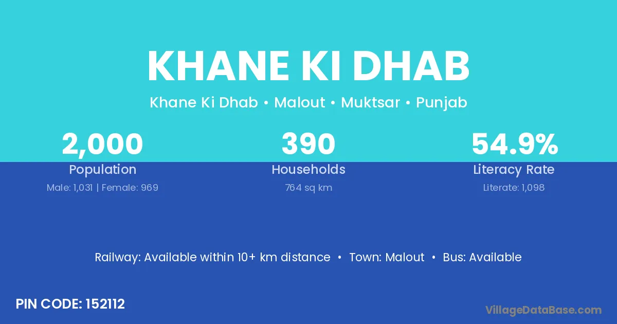 Malout is the nearest town to Khane Ki Dhab village for major economic activities