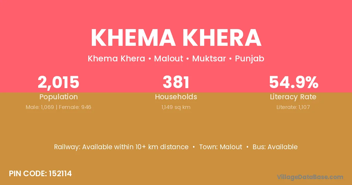 Malout is the nearest town to Khema Khera village for major economic activities