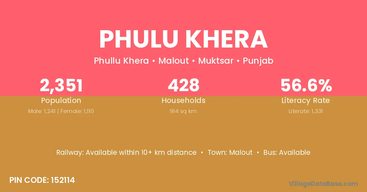 Malout is the nearest town to Phulu Khera village for major economic activities