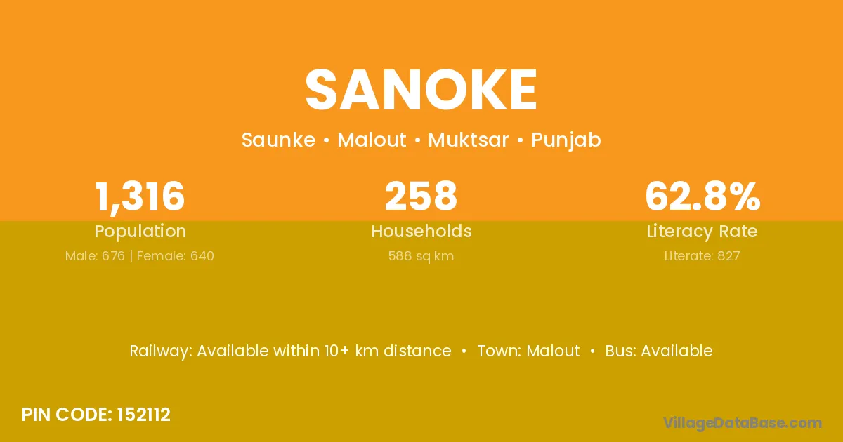 Malout is the nearest town to Sanoke village for major economic activities