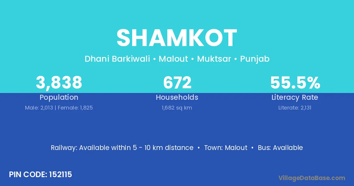 Malout is the nearest town to Shamkot village for major economic activities