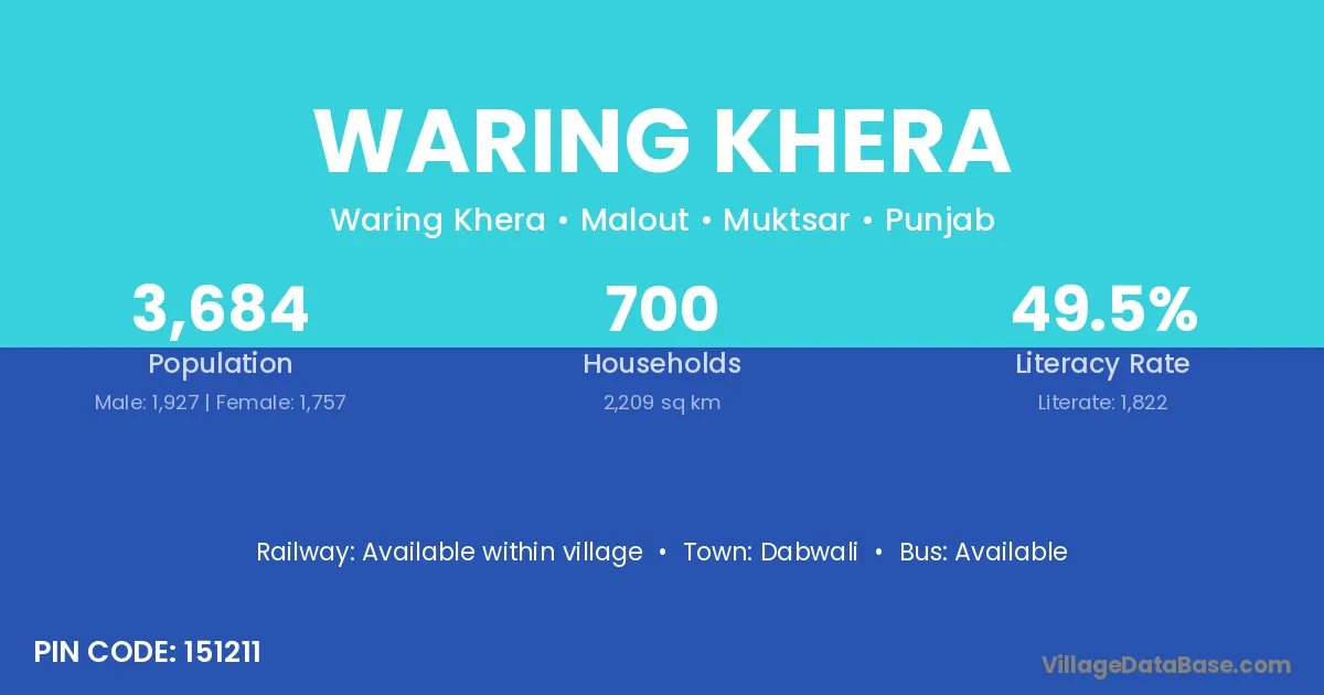 Dabwali is the nearest town to Waring Khera village for major economic activities