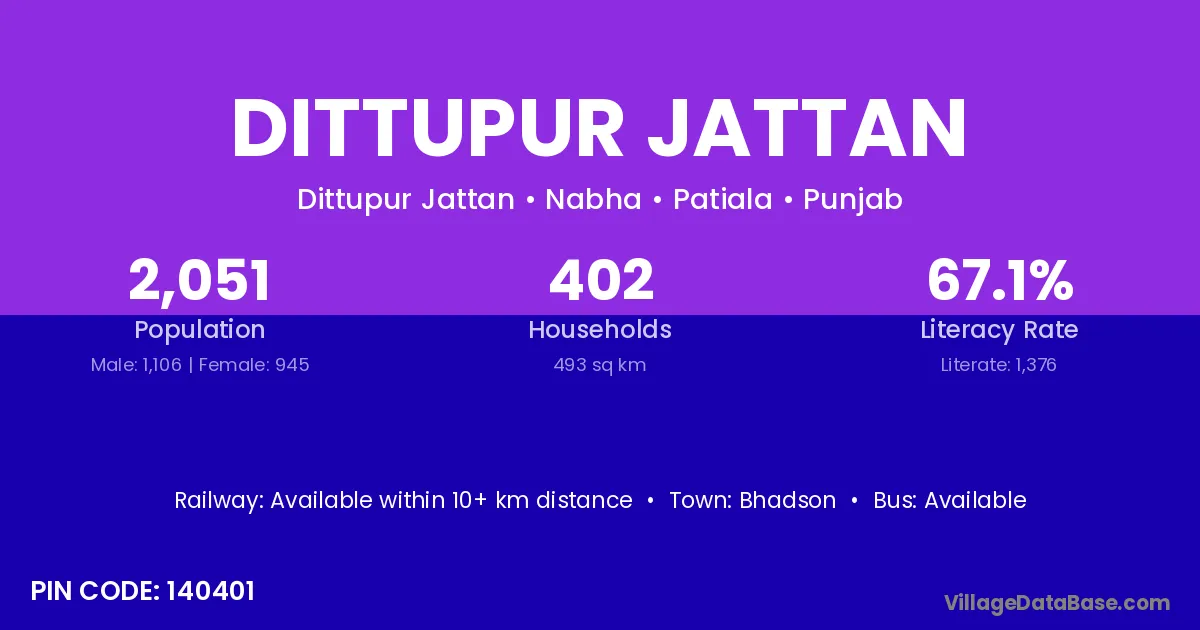Bhadson is the nearest town to Dittupur Jattan village for major economic activities