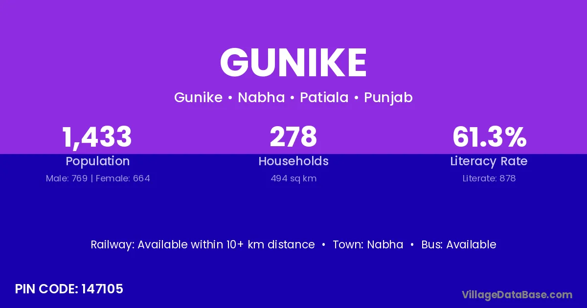 Nabha is the nearest town to Gunike village for major economic activities