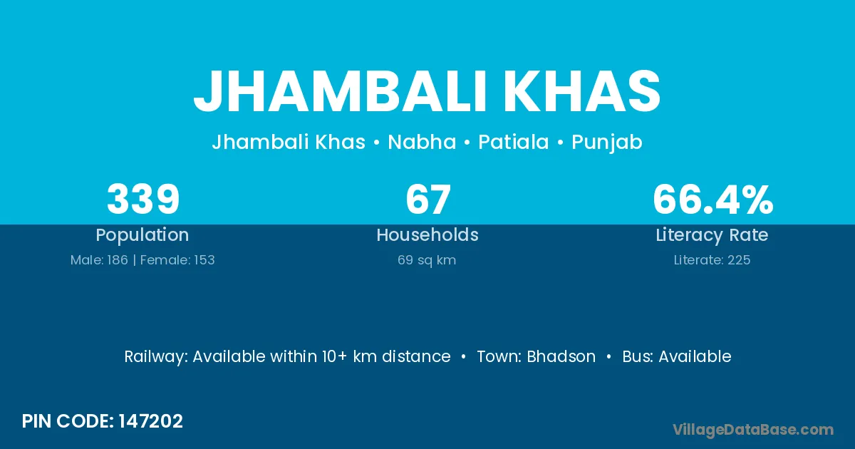 According to Census 2011 information, the village code of Jhambali Khas village is 147202.