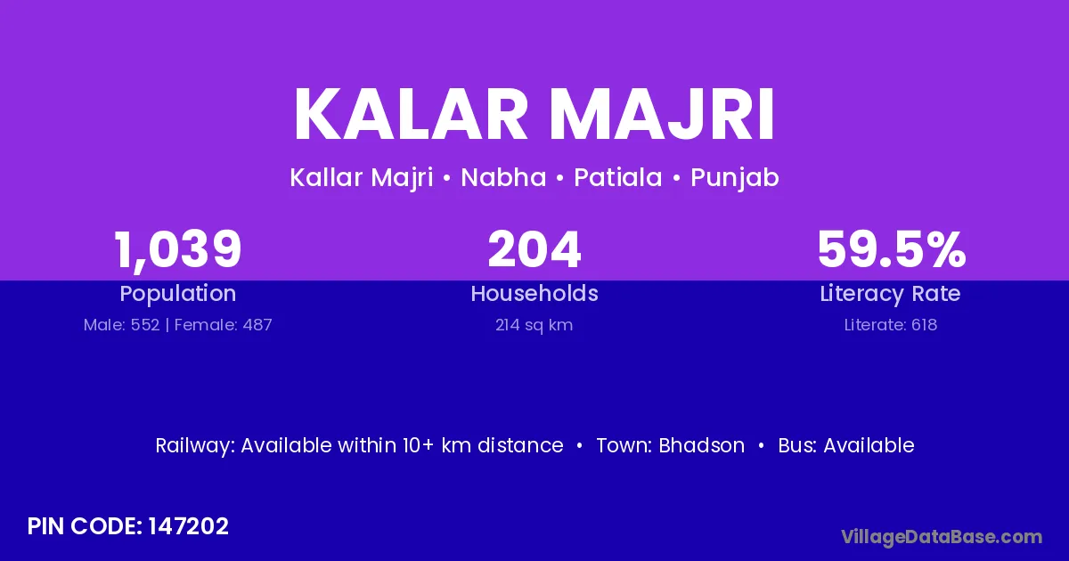 Bhadson is the nearest town to Kalar Majri village for major economic activities