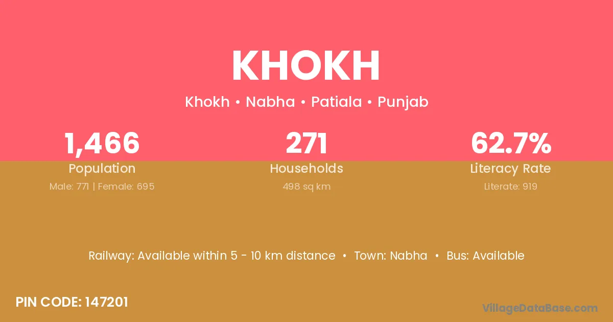 According to Census 2011 information, the village code of Khokh village is 147201.