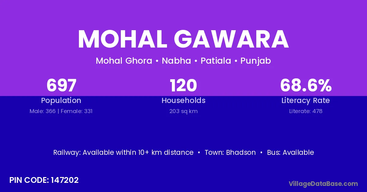 Bhadson is the nearest town to Mohal Gawara village for major economic activities